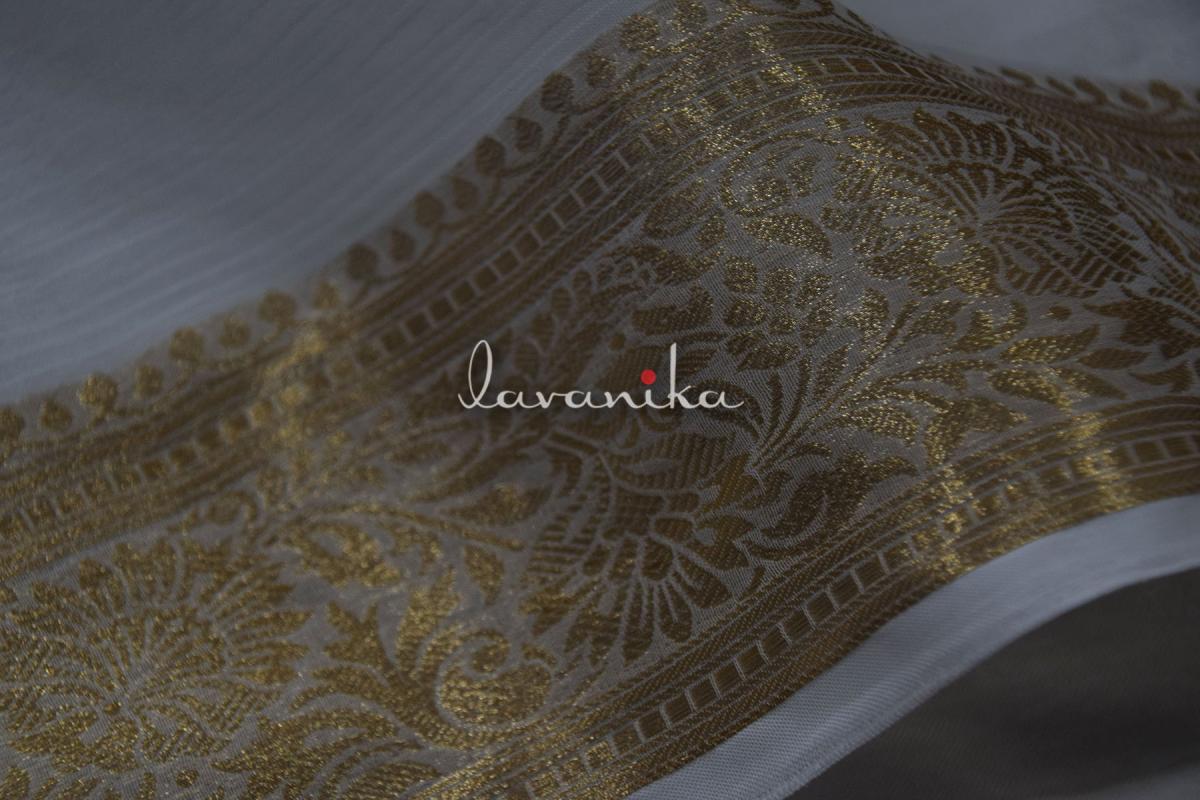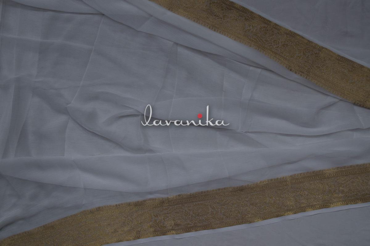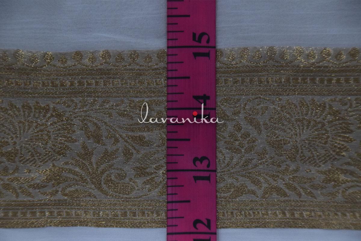 A true reflection of grace, this dyeable Viscose Chiffon Fabric with Anmol Zari Embroidered Border is a lightweight and delicate fabric that is smooth to the touch. It has a sheer appearance. The fabric is known for its flowing and draping qualities, making it ideal for creating elegant and feminine garments like sarees, dupattas & scarves. The satin border adds a touch of luxury and sophistication, providing a contrasting texture and shine along both the edges of the fabric.