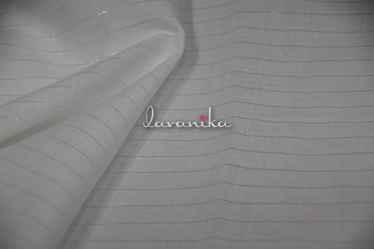 Breathable, soft, sweat-resistant and skin-friendly- This Dyeable Cotton Voile fabric with silver shimmer lines is a must have for summer season as it provides comfort in a super stylish way. The fabric is dyeable and can be used to create simple to stylish outfits both for men and women. It can also be used for various home and craft projects