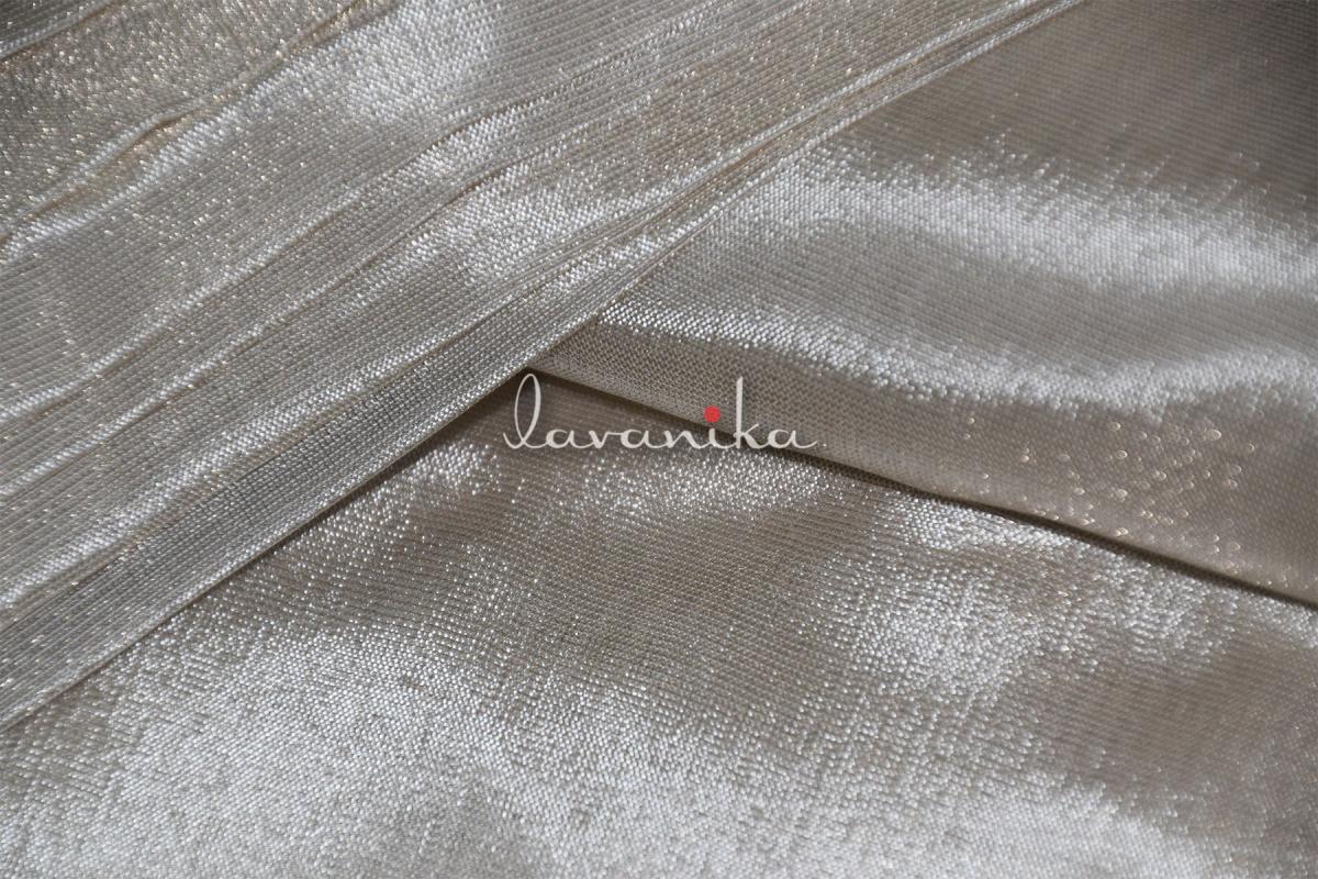 A favorite among designers, this Georgette Tissue fabric created by intertwining of Anmol Zari and Viscose thread in Georgette weave gives it shine with crinkled effect. The viscose yarn makes the fabric skin friendly, it is breatheable and drapes easily. This fabric can be dyed to suit the needs of the designer.