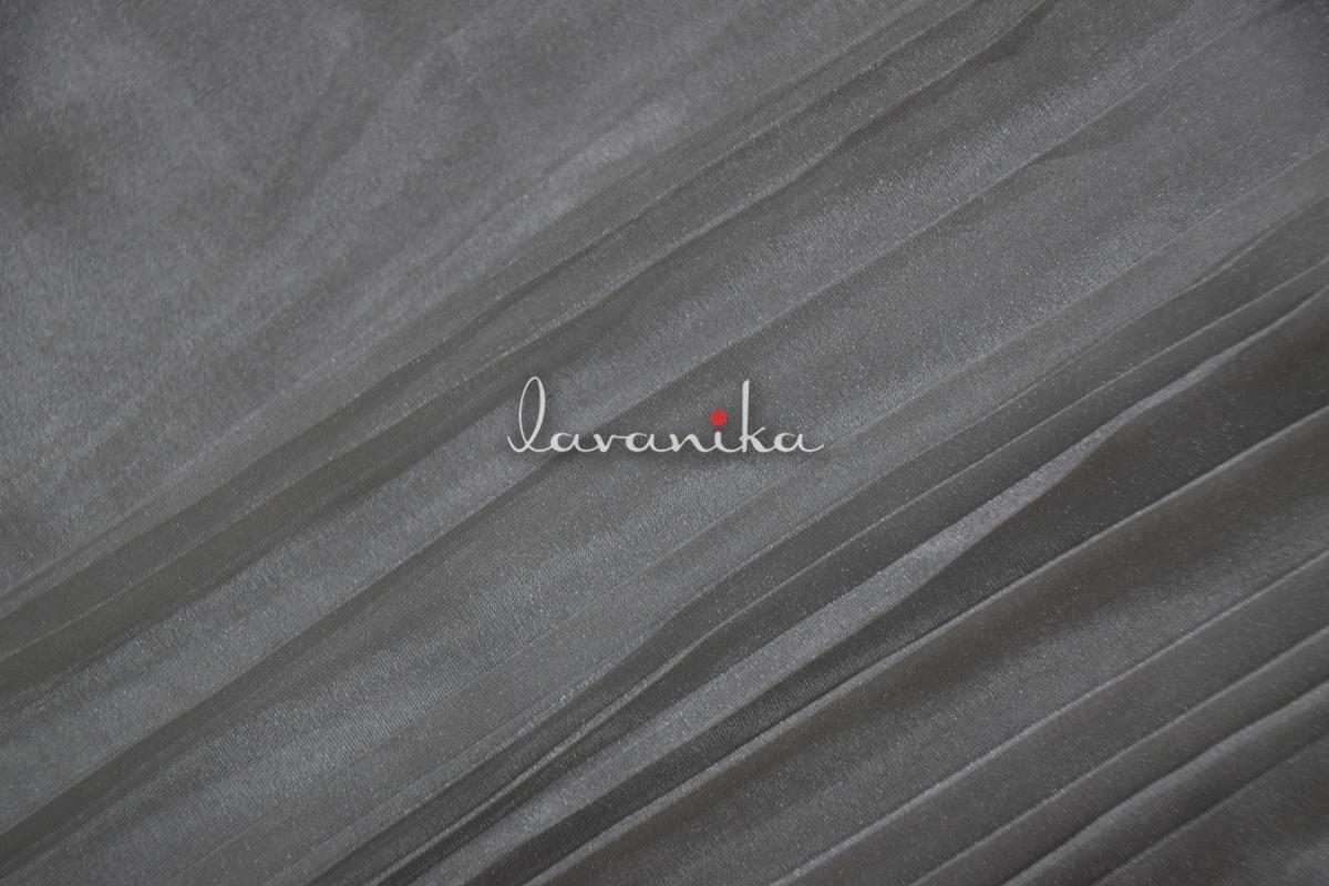A favorite among designers, this Georgette Tissue fabric created by intertwining of Silver Zari and Viscose thread in Georgette weave gives it silver shine with crinkled effect. The viscose yarn makes the fabric skin friendly, it is breatheable and drapes easily. This fabric can be dyed to suit the needs of the designer.