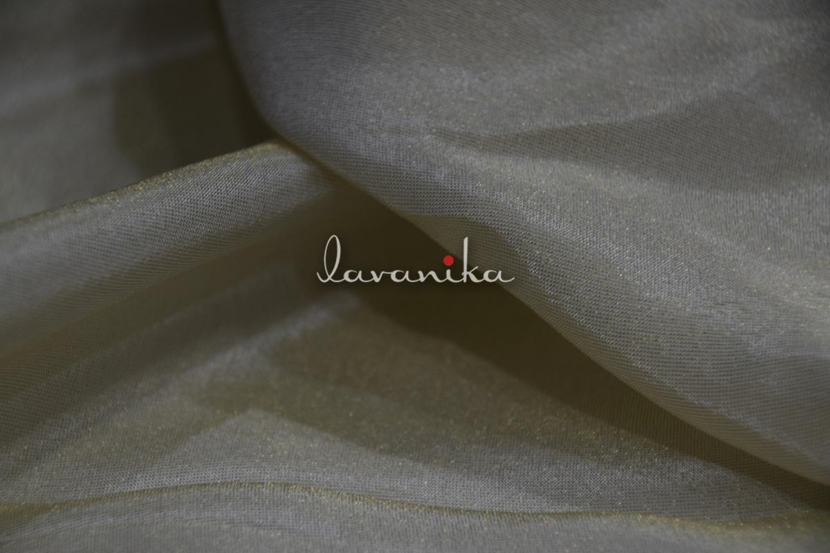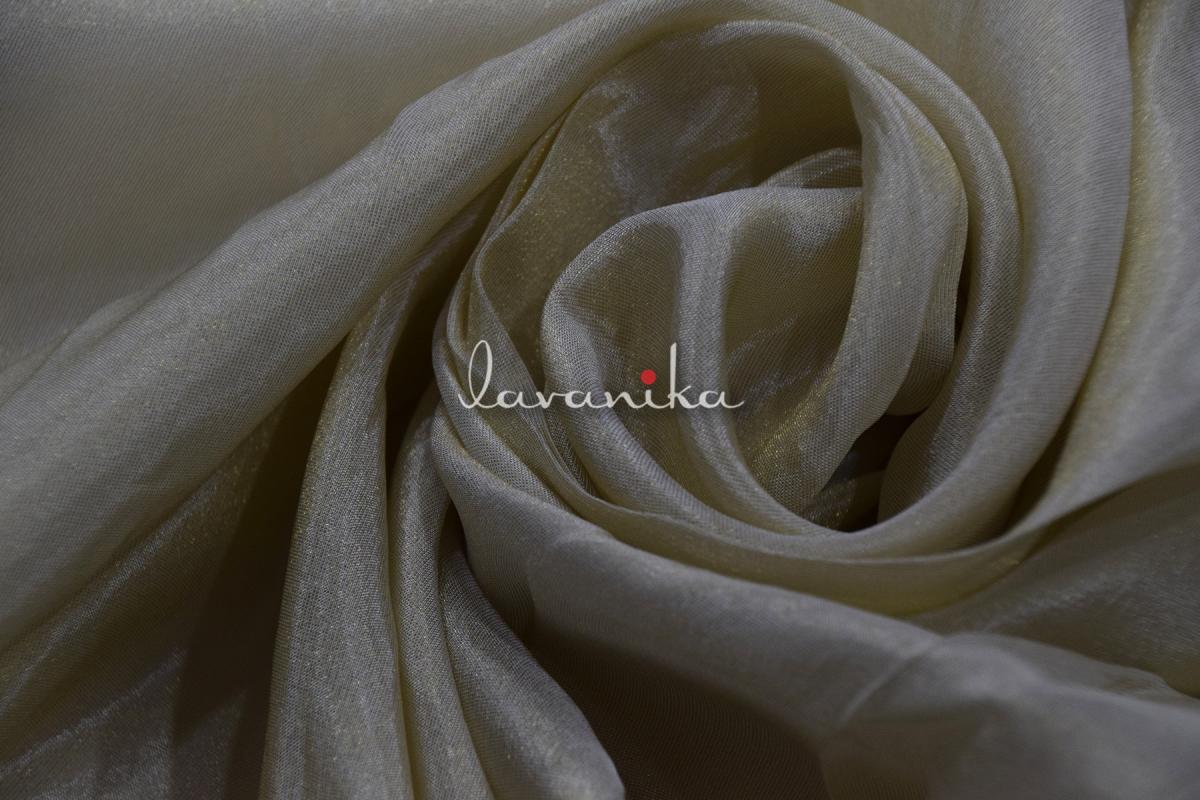 Indulge in the beauty of this dyeable Tissue Crepe Silk Fabric that has subtle golden shine which adds grace and has a soft and lightweight texture making it every designers choice.