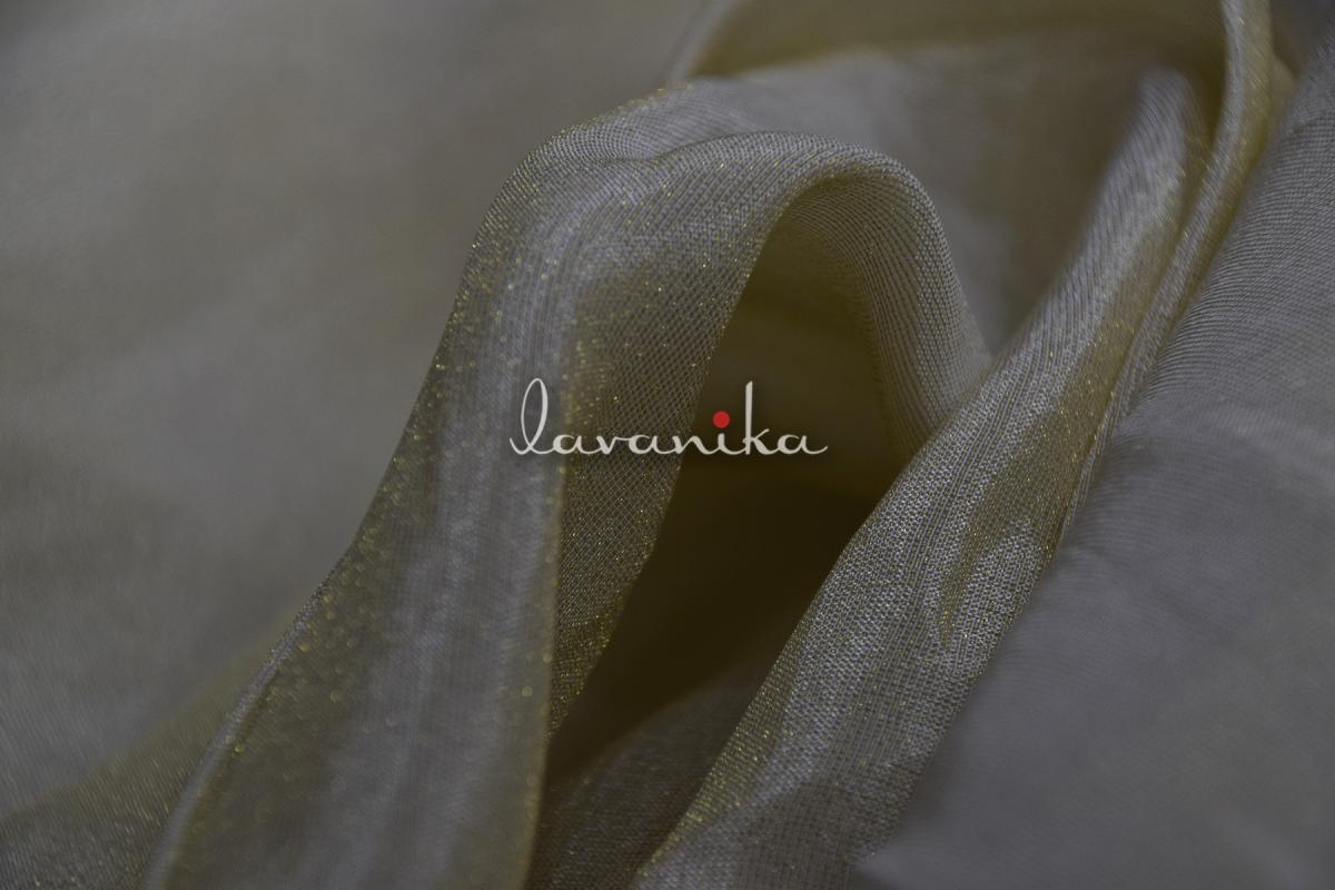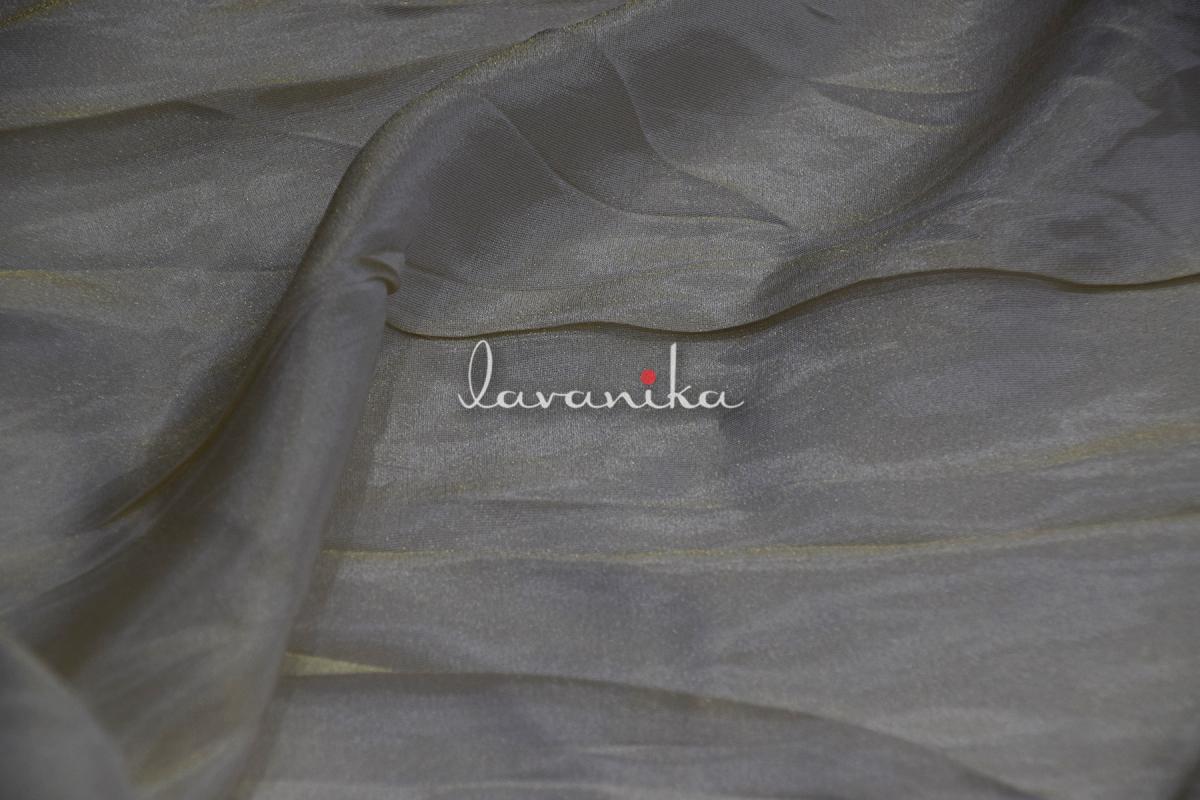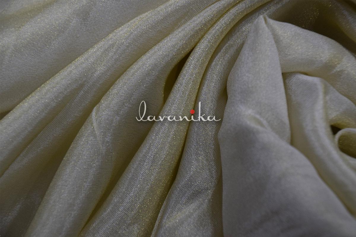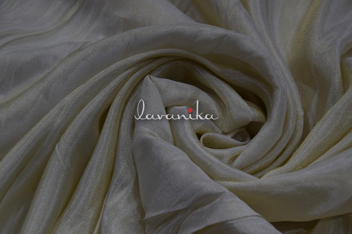 This Dyeable Tissue Russina Silk made in Georgette weave, is a lightweight, sheer fabric that has a slightly crinkled texture and a subtle, delicate sheen. It is made from using Viscose yarn and Zari thread. The fabric can be used to make dresses, jackets, kurtas & many other ensembles for men and women.