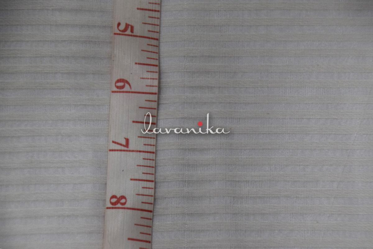This pure organza fabric is made with intricate weaving process resulting in lightweight texture, and luxurious appearance. The resham stripes are done with exquisite craftsmanship and high-quality threads, which contribute to its elevated look. The fabric is dyeable and can be used to make high quality garments and accessories