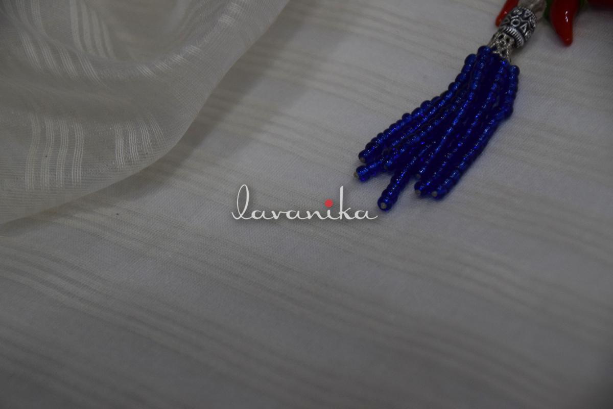 This pure organza fabric is made with intricate weaving process resulting in lightweight texture, and luxurious appearance. The resham stripes are done with exquisite craftsmanship and high-quality threads, which contribute to its elevated look. The fabric is dyeable and can be used to make high quality garments and accessories