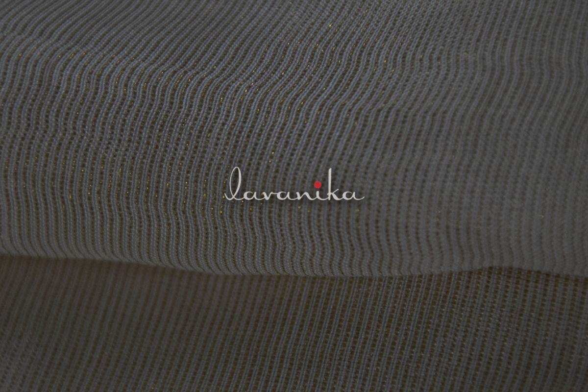This beautiful glitter stripe on premium quality Viscose Russian Silk fabric has a smooth finish and a soft handfeel. The shimmery striped designmakes it an ideal choice for sarees and lehengas. It can be used alone or over other fabrics for fitted to loosely fitted blouses, dresses, jackets, sarees, lehengas and other evening wear. It can also be used to create various types of accessories and upholstery. The fabric is dyeable.