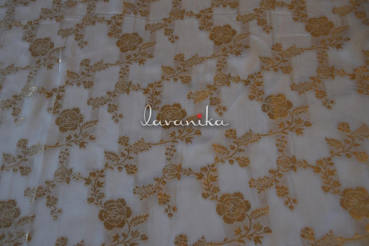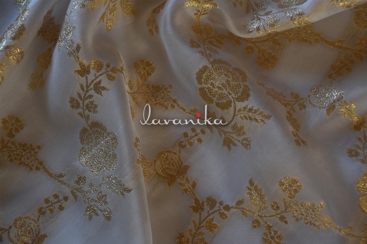 The beautiful and Dyeable Organza fabric is lightweight and of sheer quality, creating a delicate and ethereal appearance. The Jacquard Jaal adds depth and character to the fabric, incorporating raised designs or motifs that enhance its visual appeal. This is a very versatile fabric that can be used both in womenswear as well as menswear. It can also be used to create aethetically appealing home decor items and accessories
