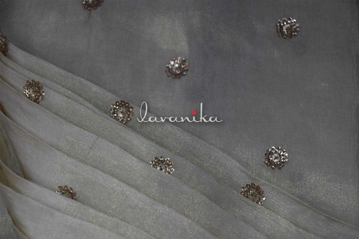 Sequin and Zari embroidery on Dyeable Tissue Fabric Dno334139RFD