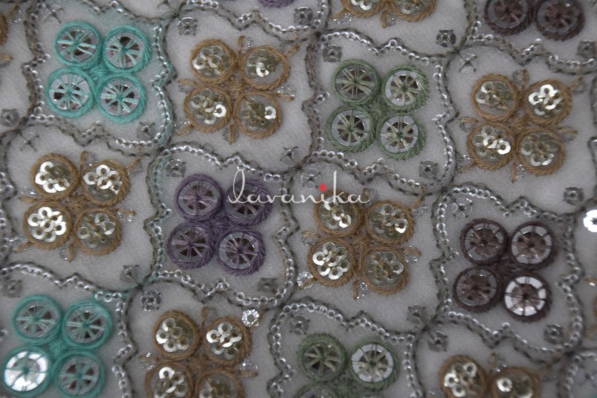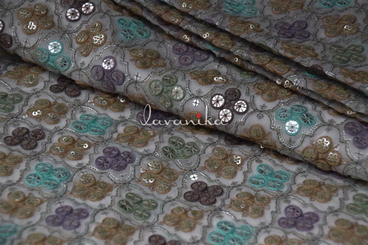 Sequin work, Thread Embroidery on Dyeable Georgette Fabric 337032MFTRFD