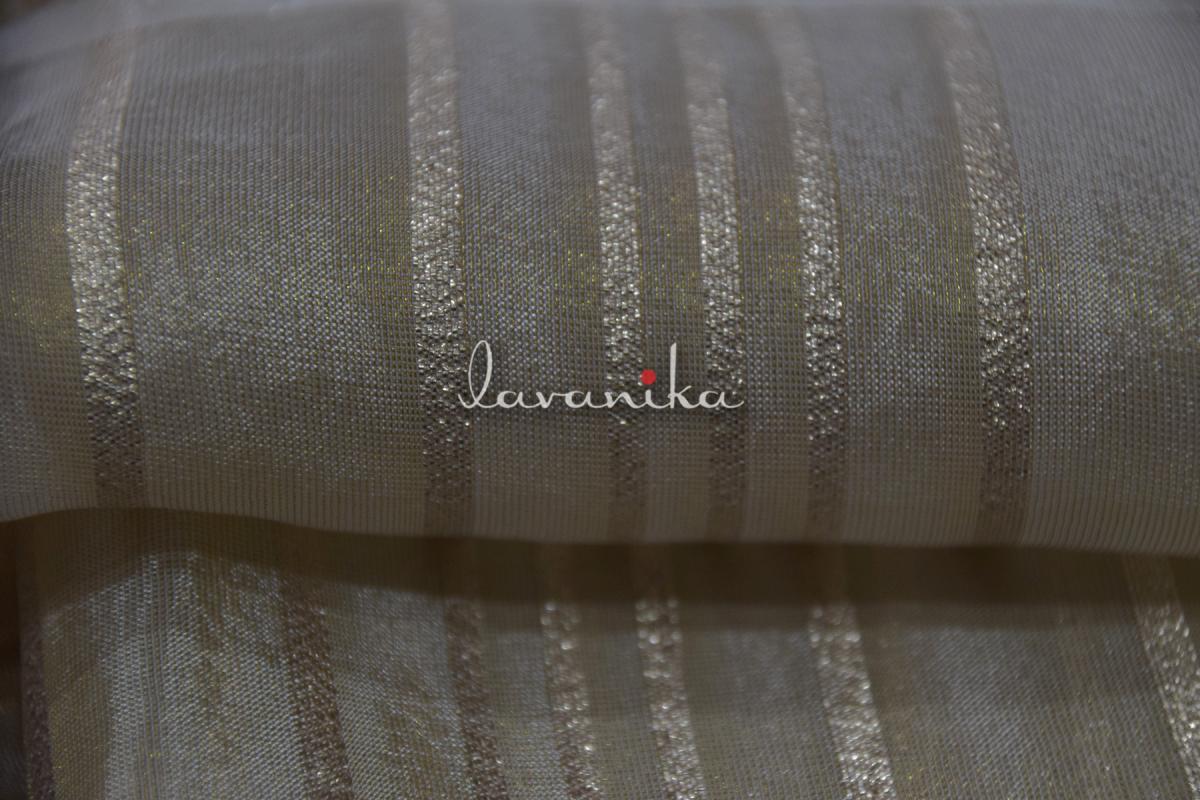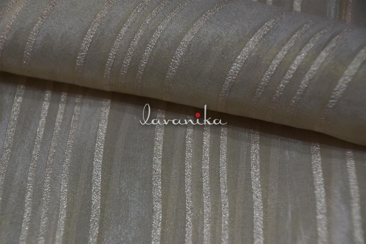 This gorgeous viscose tissue fabric is dyeable and has single width stripes pattern giving it sleek, glamourous and luxurious look. It has a smooth handlfeel and looks very elegant. It Is perfect choice to create garments especially occasionwear, bridalwear and eveningwear. Can also be used to make luxurious drapery.