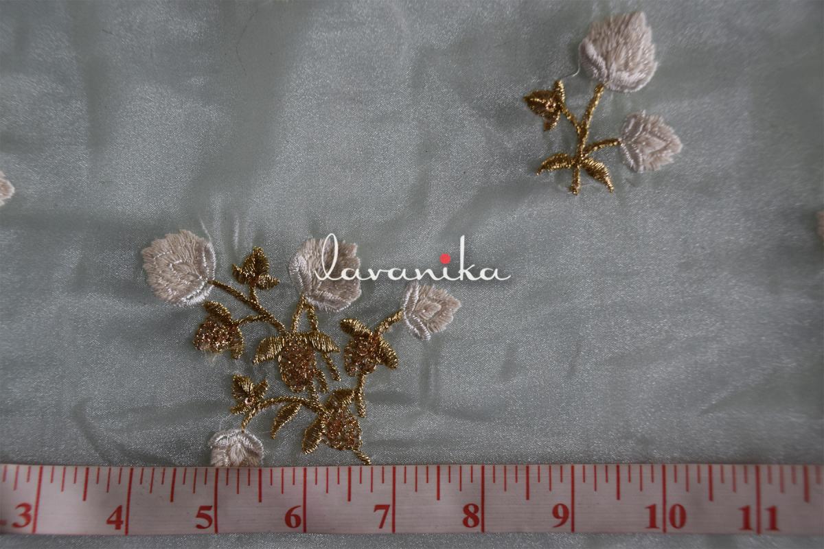 This beautiful ornated organza is a sheer fabric that is very crisp. It has a smooth, flat finish, is strong and durable, and gets its stiffness from tightly twisted yarns. It can be used alone or over other fabrics for fitted to loosely fitted blouses, dresses and evening wear.The fabric and thread are both dyeable.