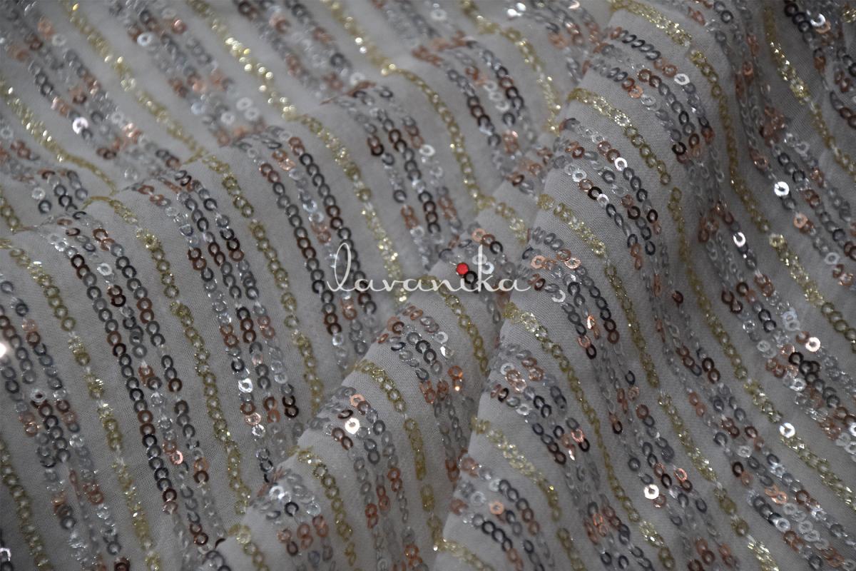 Multi color Sequin lines on Dyeable Georgette Fabric DnoB7507RFD